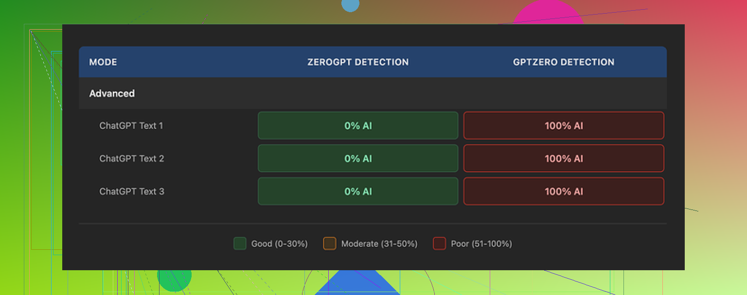 - GPTZero and Originality.ai barely moved in some tests, and in others the drop was small enough that it still looked risky.