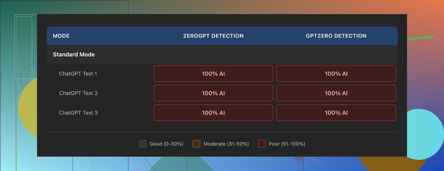 Both detectors flagged every single GPTinf output as 100% AI generated. No partial scores, no borderline cases. It did not matter which mode I picked.