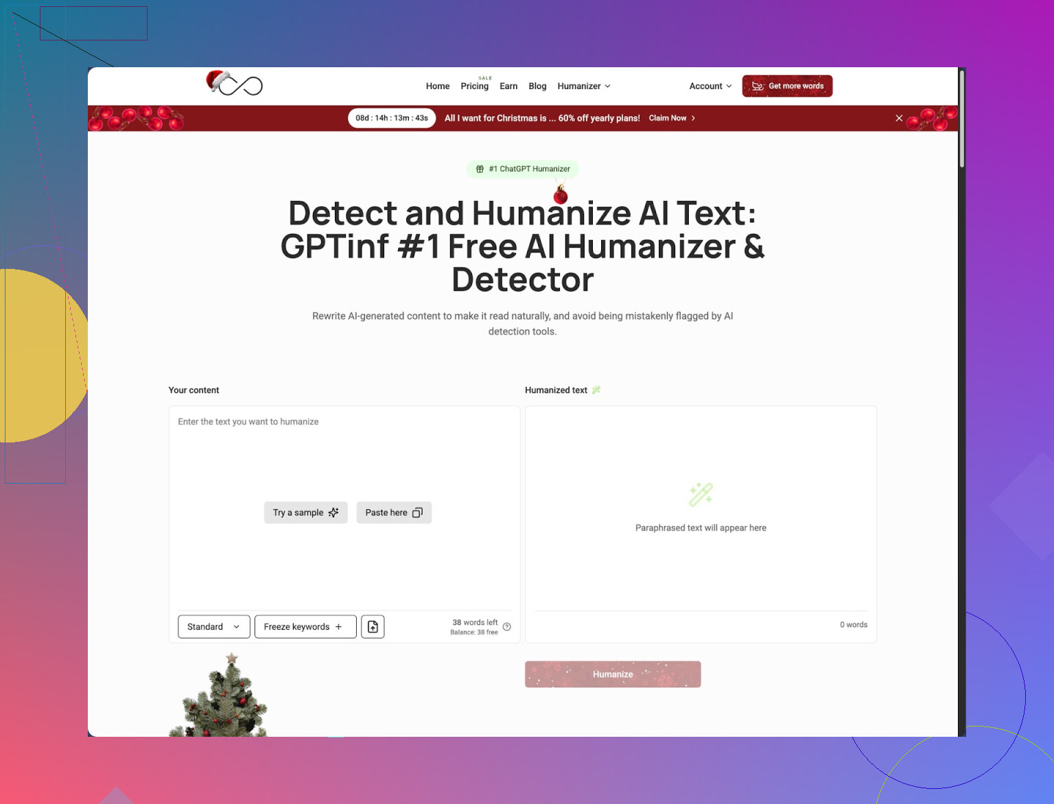 I spent a weekend running a bunch of “AI humanizer” tools through GPTZero and ZeroGPT, and GPTinf was one of them. The homepage throws out a “99% Success rate” claim, so I expected at least something passable.