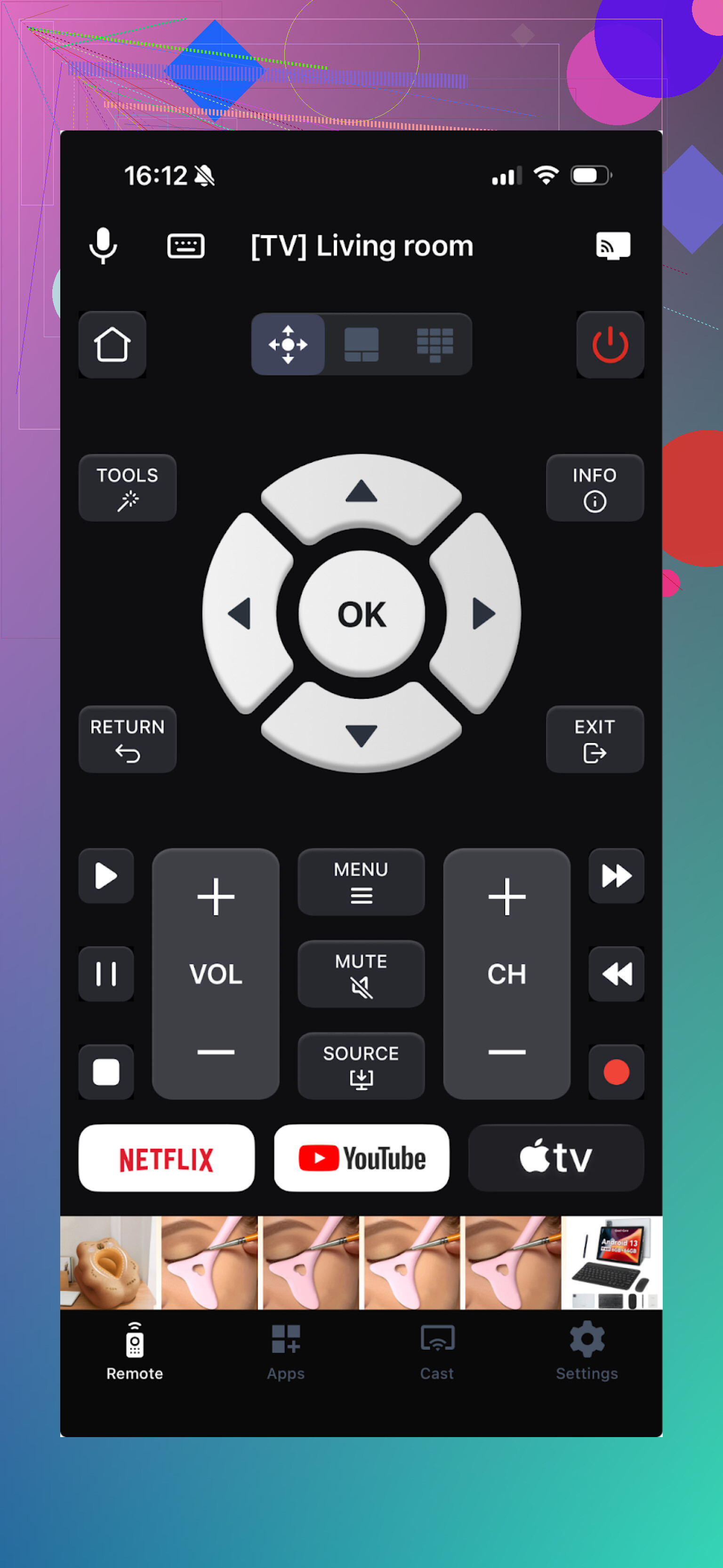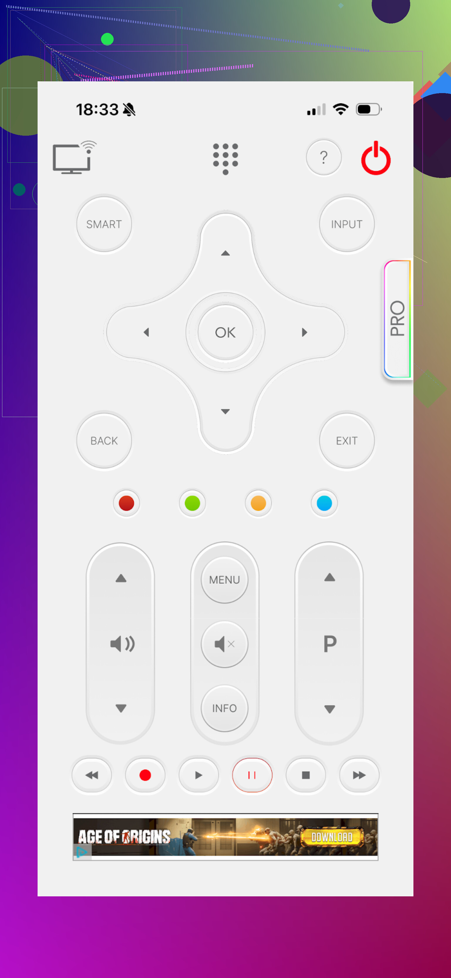 The free mode gives you a basic remote. Enough for power, volume, simple navigation. The downside: many ads, and the TV discovery process took its time every single time.
