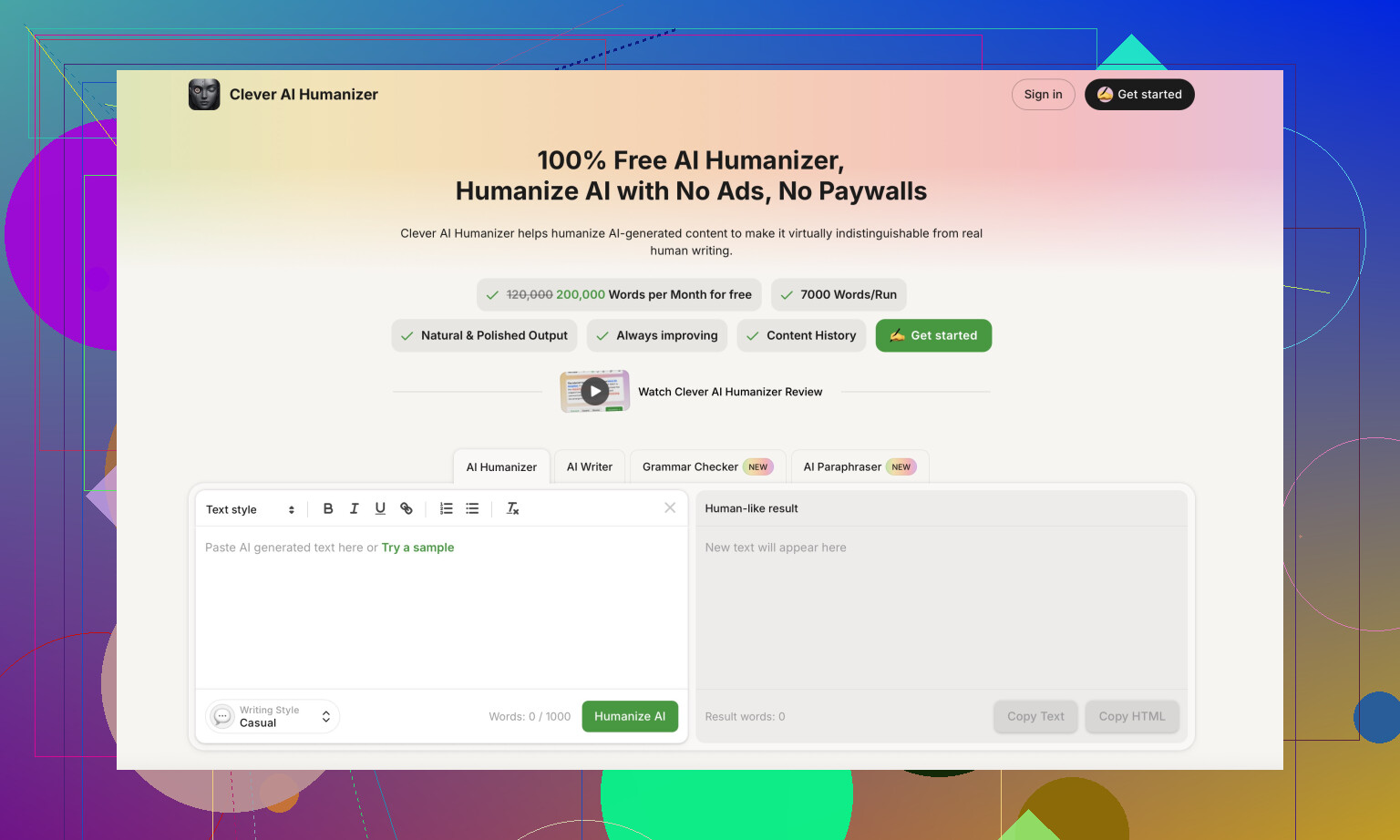 • Hago una lectura en voz alta para detectar puntuación rara y repeticiones, porque esas cosas aún hacen saltar a los detectores y también a los humanosEn ese contexto, Clever AI Humanizer me ha funcionado razonablemente bien. Menos puntuación rara que lo que la gente describe con la herramienta de Walter, y el texto se parece más a algo que yo escribiría después de un café, no a un robot abusando de los puntos y coma. No es magia, todavía hay que editar, pero como capa base ha sido lo bastante útil como para seguir en mi stack.