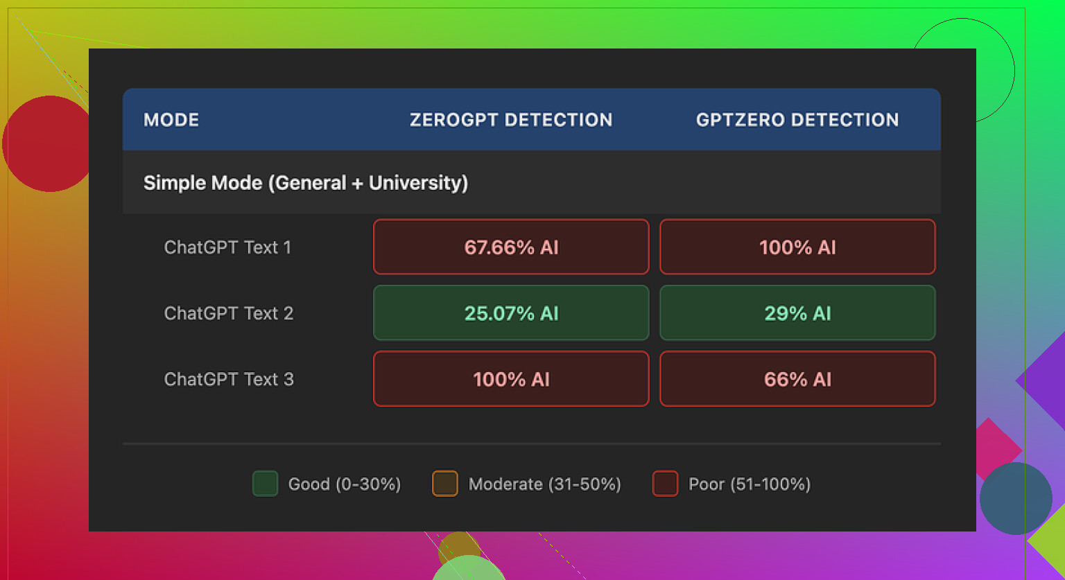 Detalle importante: solo usé la versión gratuita. Eso te bloquea en el modo “Simple”. La página de precios afirma que los usuarios de pago obtienen los modos “Standard” y “Enhanced”, que se supone que tienen mejor comportamiento para saltarse detectores. No probé esos modos, así que no tengo datos de cómo puntúan.