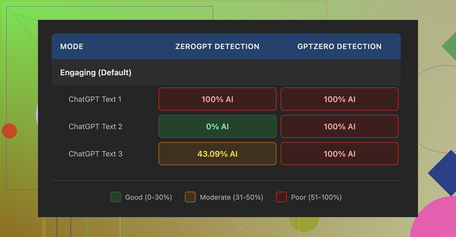 I disagree slightly with both of them on how much AI detection should drive your choice. In my runs, yes, GPTZero still pegged most outputs as AI. ZeroGPT wandered all over the place. But in 2025 style detection, random “slip through” wins are not a strategy. If you need consistent lower AI scores, you want: